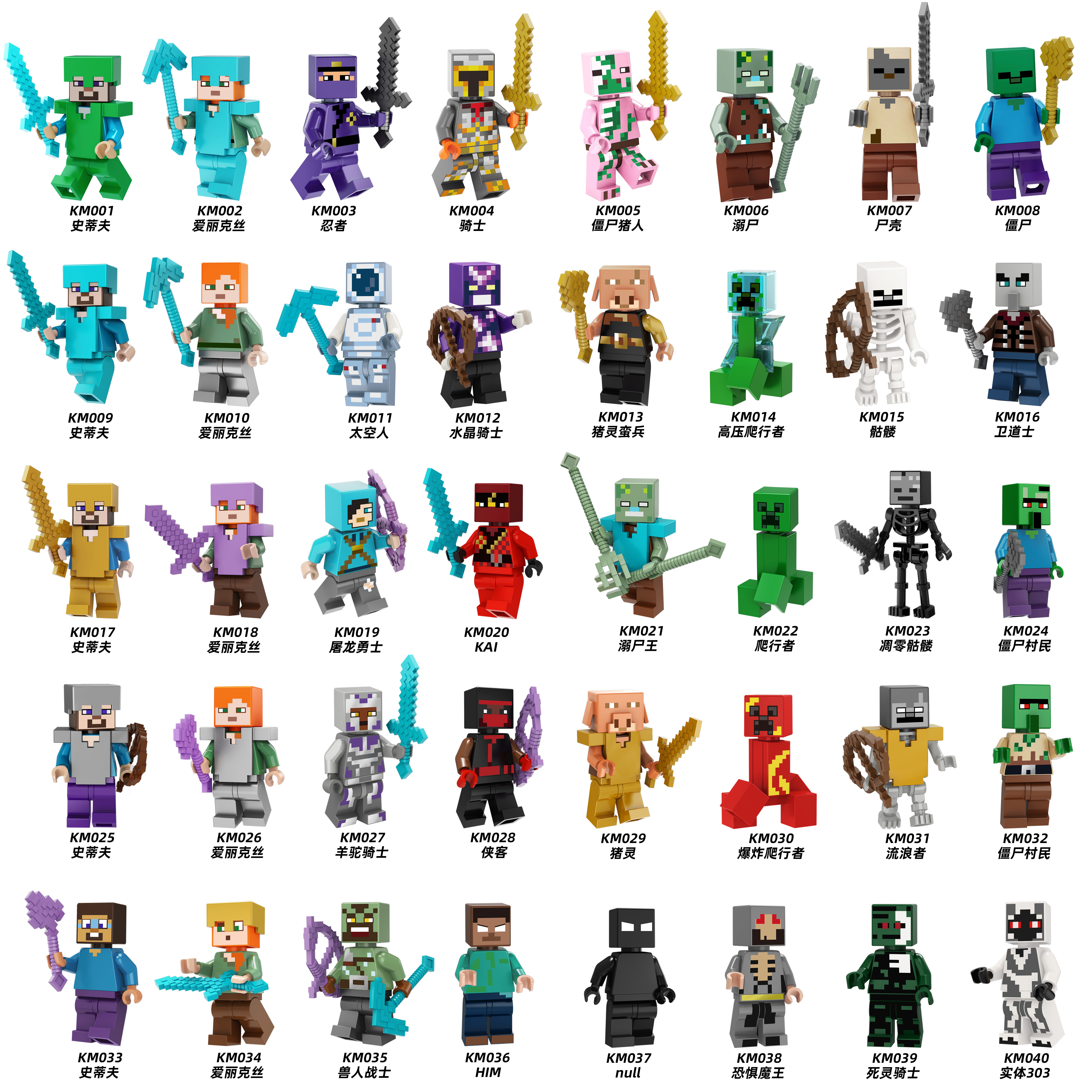 YKM01 YKM02 YKM03 YKM04 YKM05 KM001-KM040 Game Mine Craft Building Blocks Collect Toys For Kids